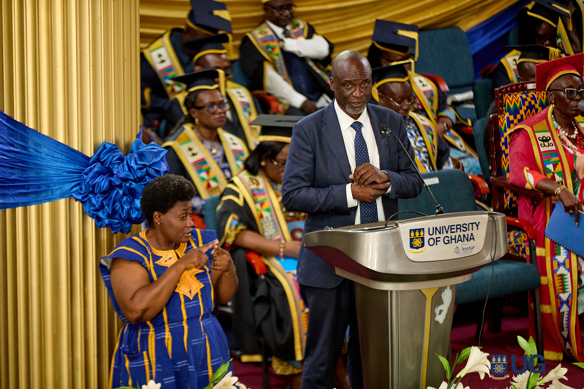 Performances across the two-day lecture and special congregation were delivered by the Ghana Dance Ensemble, the University of Ghana Jubilee Choir and featured sign language interpretation by the Centre for Disability Studies and Advocacy. On both days, the Lecturer’s presentations were preceded by Seprewa performances by Mr. Osei Korankye.