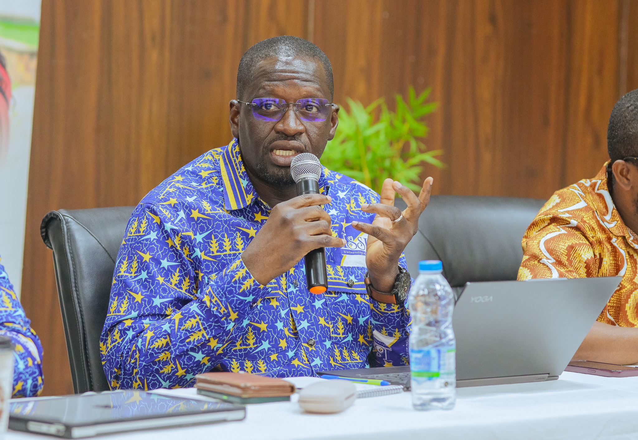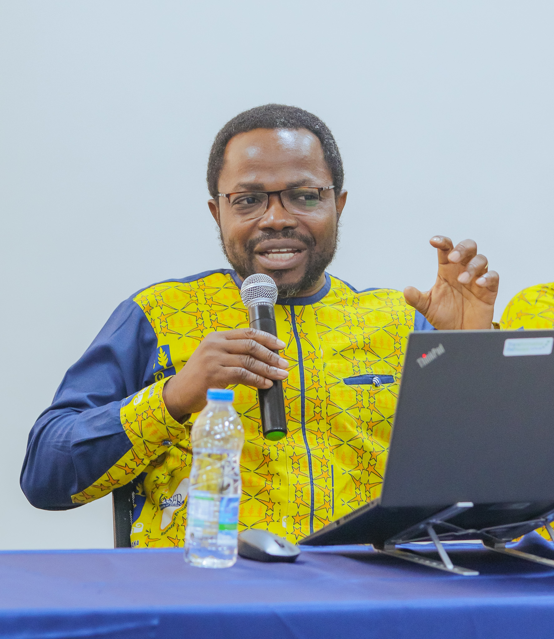 Prof. Simon Bawakyillenuo, Senior Research Fellow and the Head of Statistics and Survey Division at ISSER speaking during the media engagement