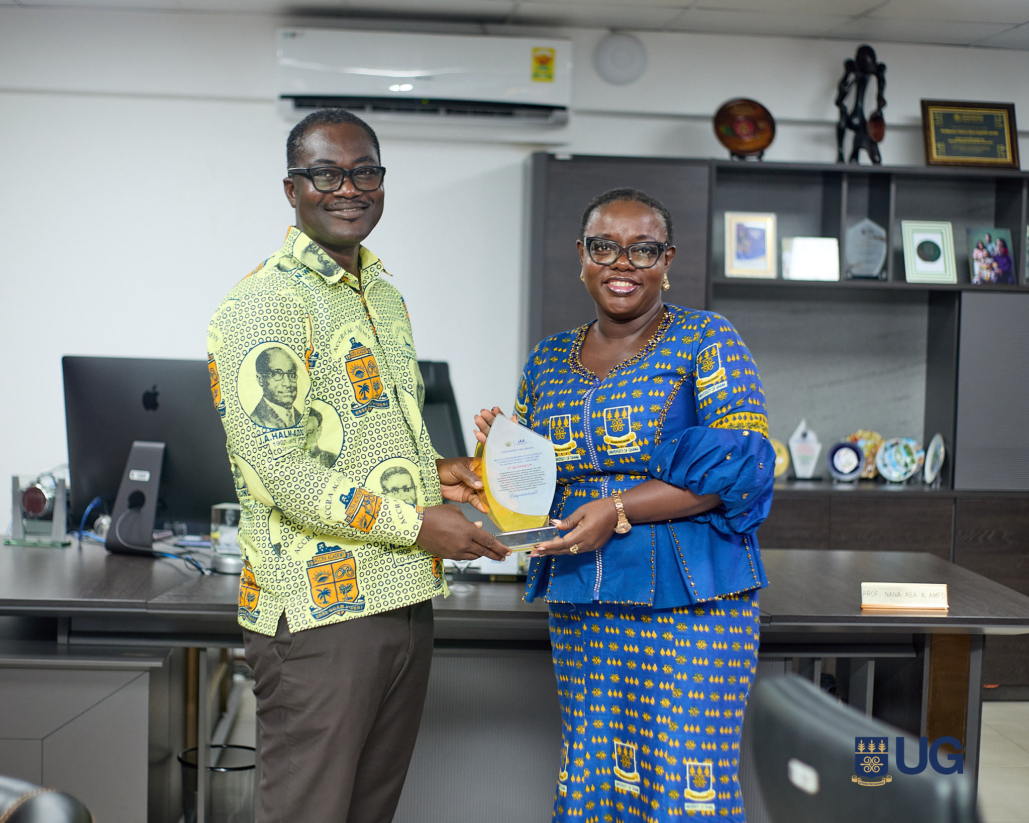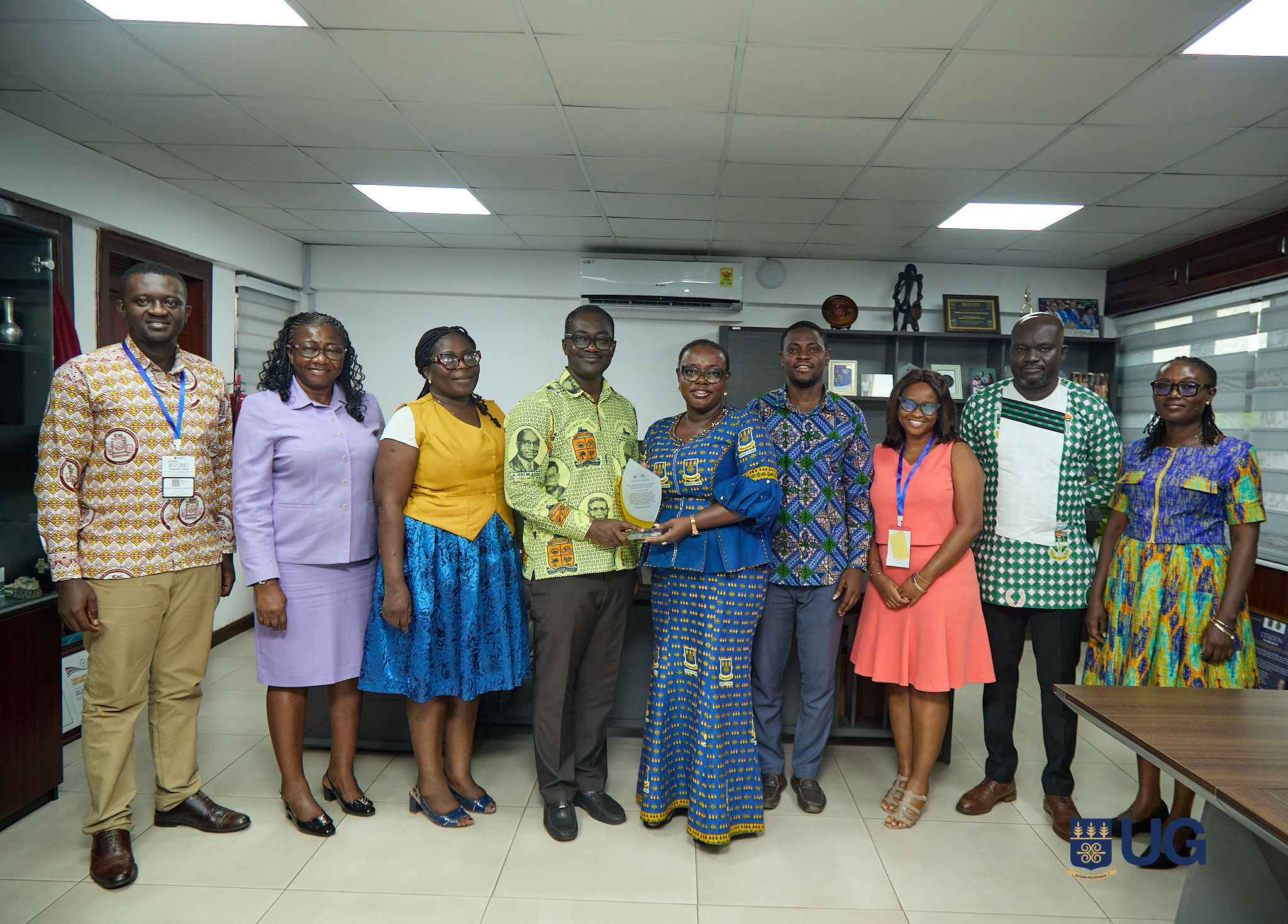 A team from the Internal Audit Directorate, led by Prof. Samuel Nana Yaw Simpson, Deputy Director, presented the award to the Vice-Chancellor, Prof. Nana Aba Appiah Amfo, at a meeting.
