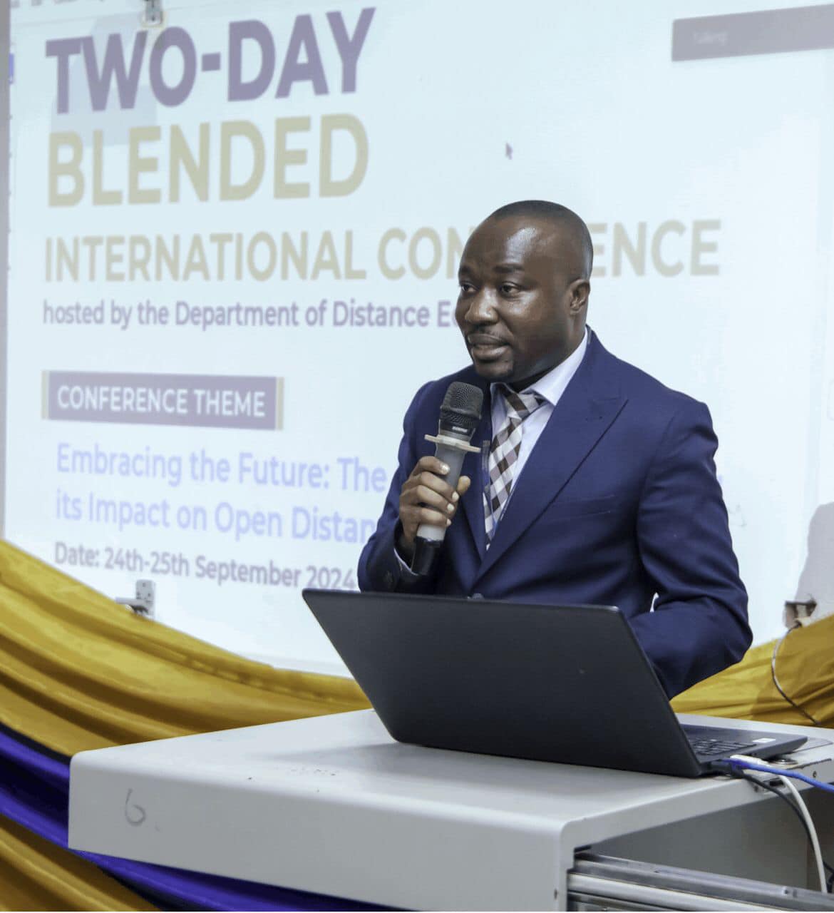 In his welcome address, Professor Samuel Amponsah, Head, Department of Distance Education, explained that the conference aimed to promote knowledge sharing, collaboration, and networking among key stakeholders. He expressed optimism that the discussions would drive impactful research on AI and ODeL, in line with priority 2 of the University of Ghana's Strategic Plan 2024-2029, which focuses on impactful research. Professor Amponsah extended his appreciation to participants, both virtual and in-person, speakers, as well as the organising committee.