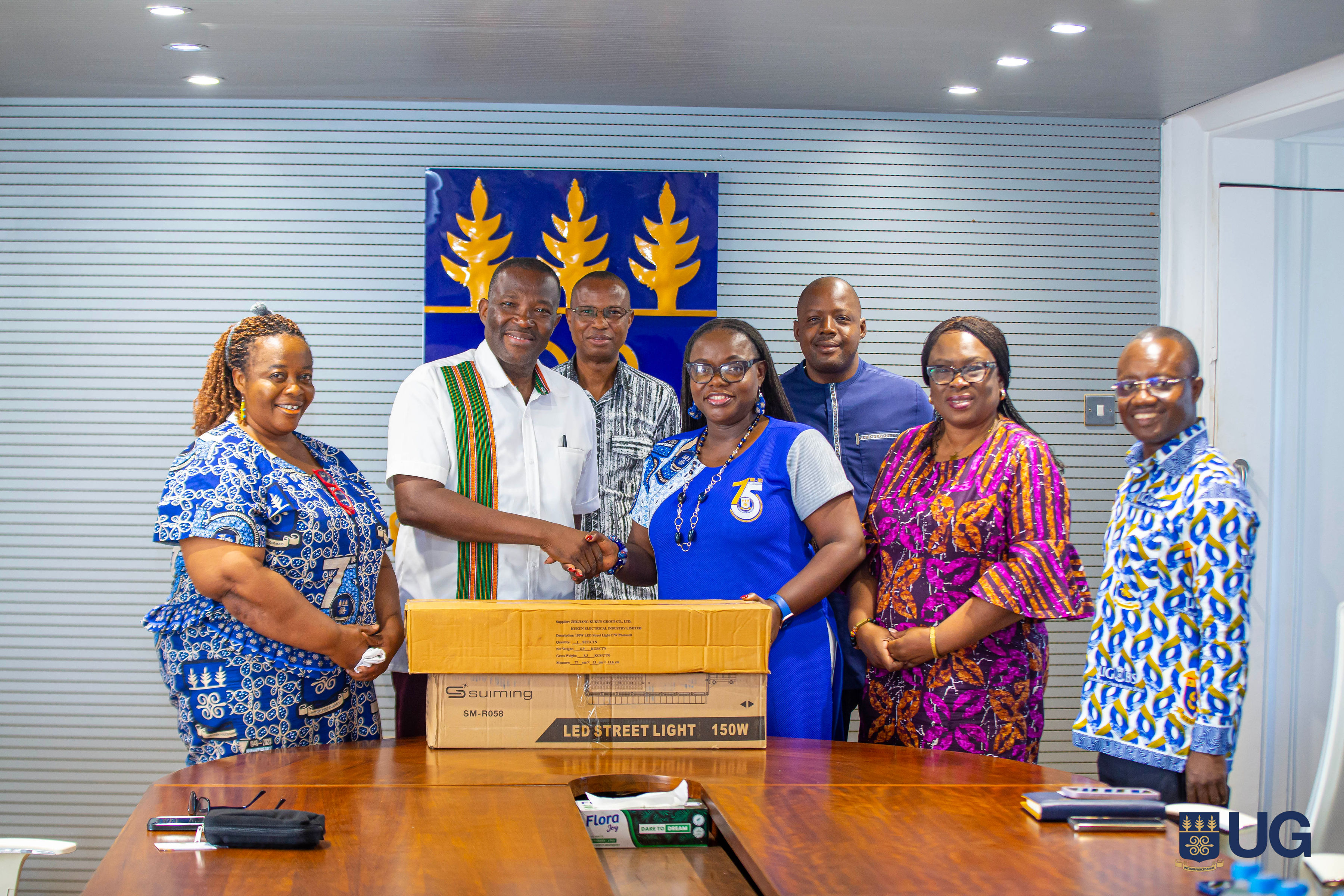 The University of Ghana has received a donation of 20 LED streetlights from Hon. Sebastian Deh, an Alumnus and Member of Parliament for Kpando, to support efforts to improve safety and security on campus.